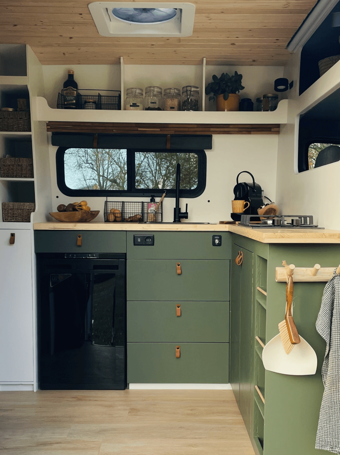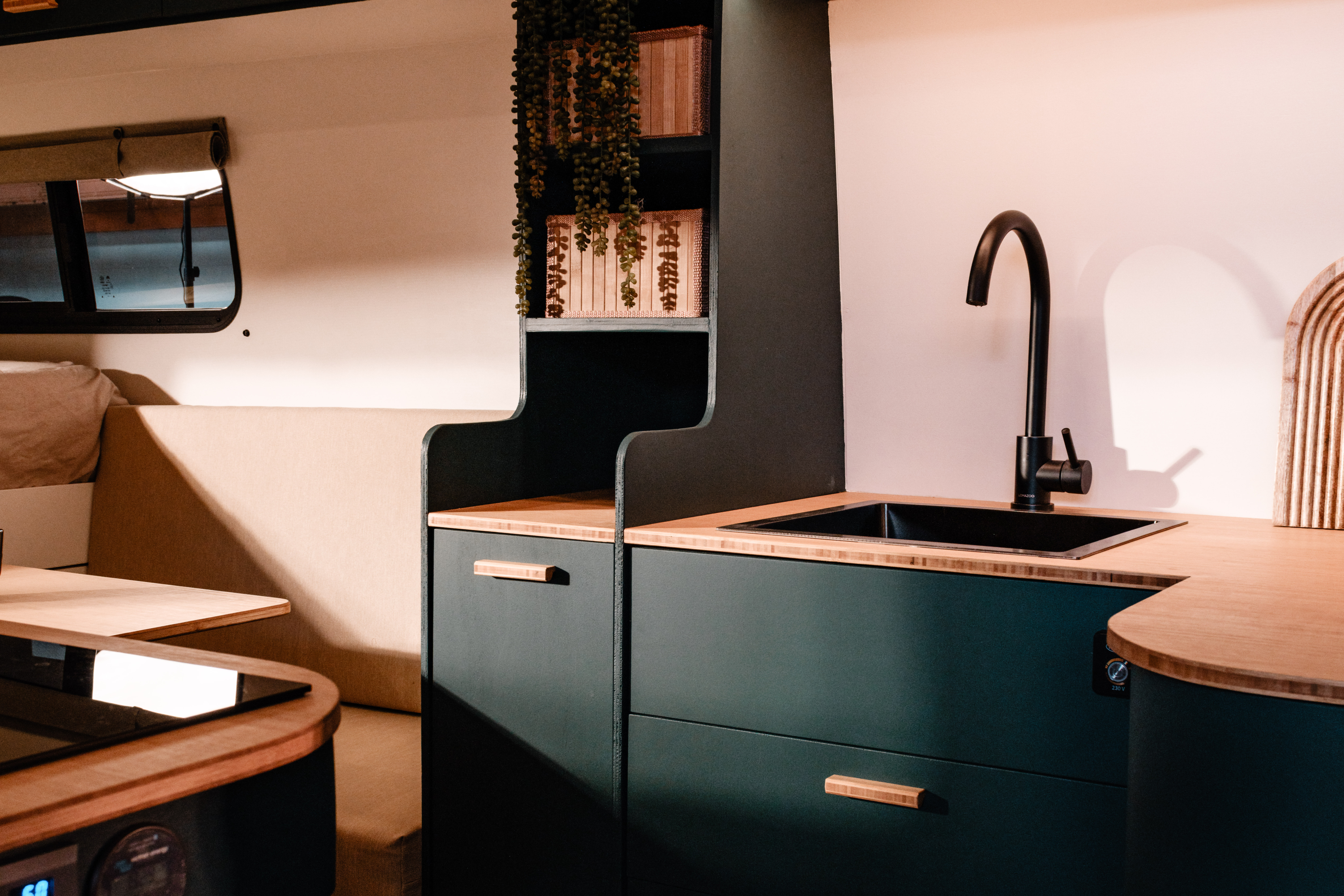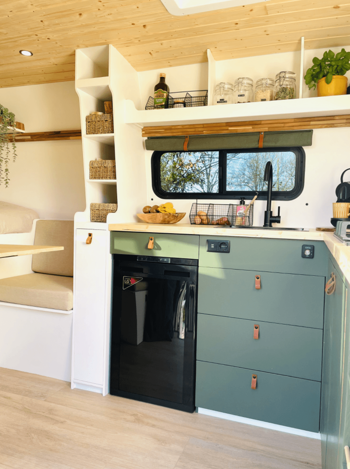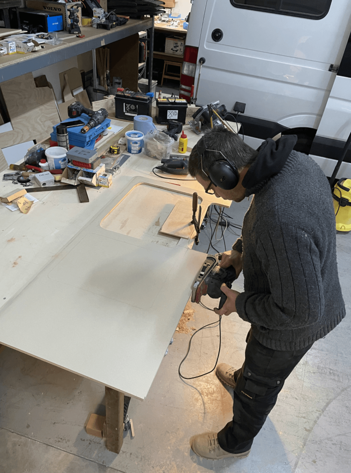Een tof project voor een gezin met twee kinderen. Deze bestelbus toverden we om naar een hele toffe camper, inclusief off grid koken op inductie, twee extra zitplaatsen (RDW goedgekeurd) én een hefdak!