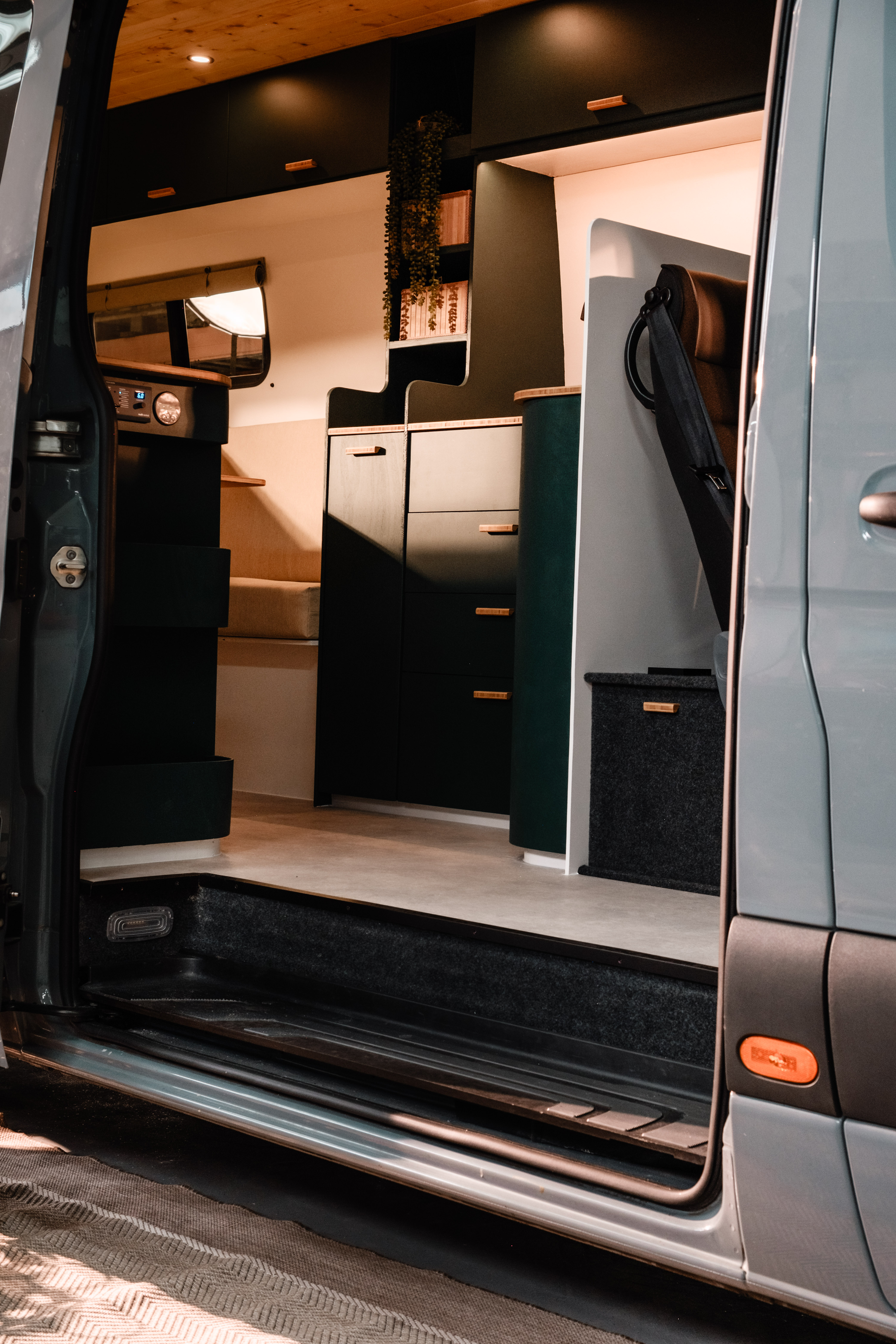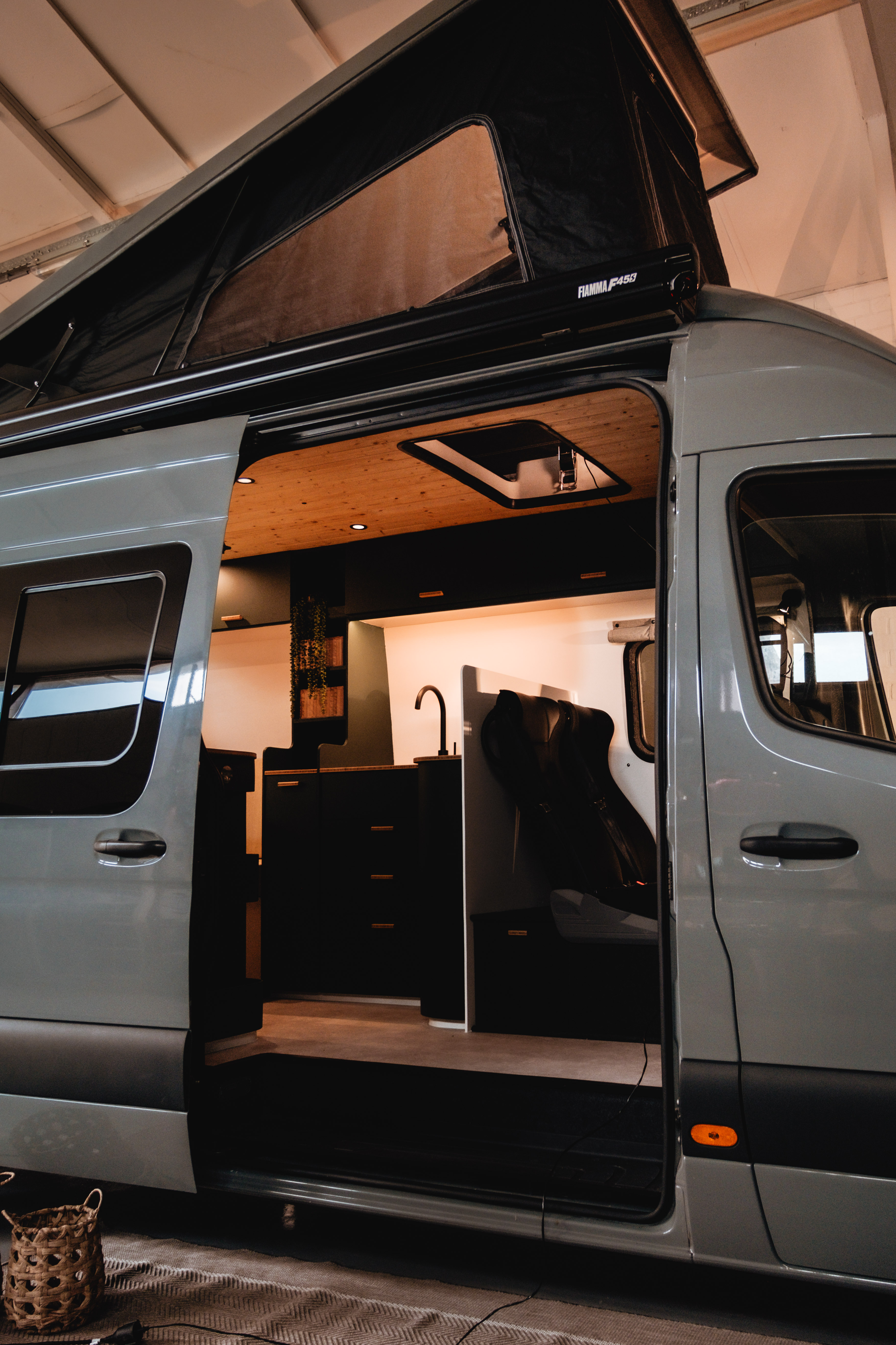 Deze supermooie ge-wrapte two-tone off-grid Mercedes Benz Sprinter L3H2 hebben we van lege bestelbus compleet omgebouwd naar camper. Het hele proces kun je ook bekijken op ons Instagram account.